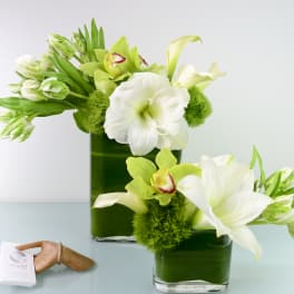 Price: $125.00 Designers Pick of Premium Seasonal White and Green Blooms will fit in any space! Product Tags: Next-day Delivery