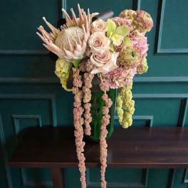 Price: $250.00 Yellow Calla Lilies, Cymbidium Orchids, Mokara Orchids, Hydrangea and Pincushion Protea Product Tags: Next-day Delivery